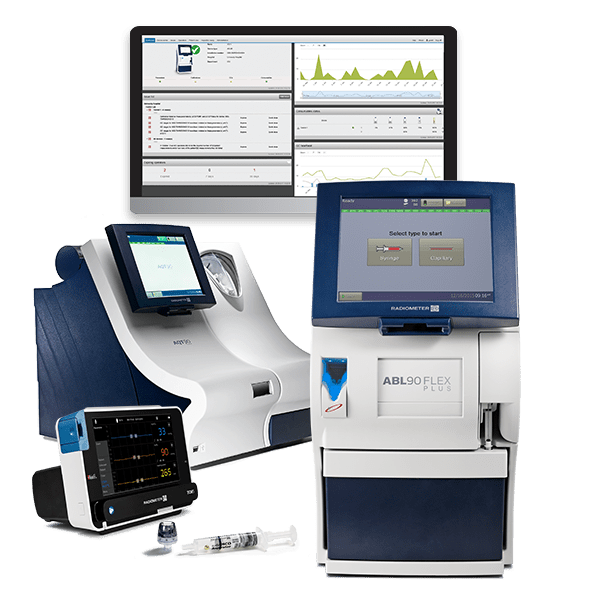 Ud over 19 kritiske blodgasparametre og 9 biomarkører tilbyder Radiometer problemfrit tilsluttede blodanalyseapparater, transkutane monitorer og en point-of-care IT-løsning, der automatiserer og forenkler blodprøvetagning og dataindsamling med: